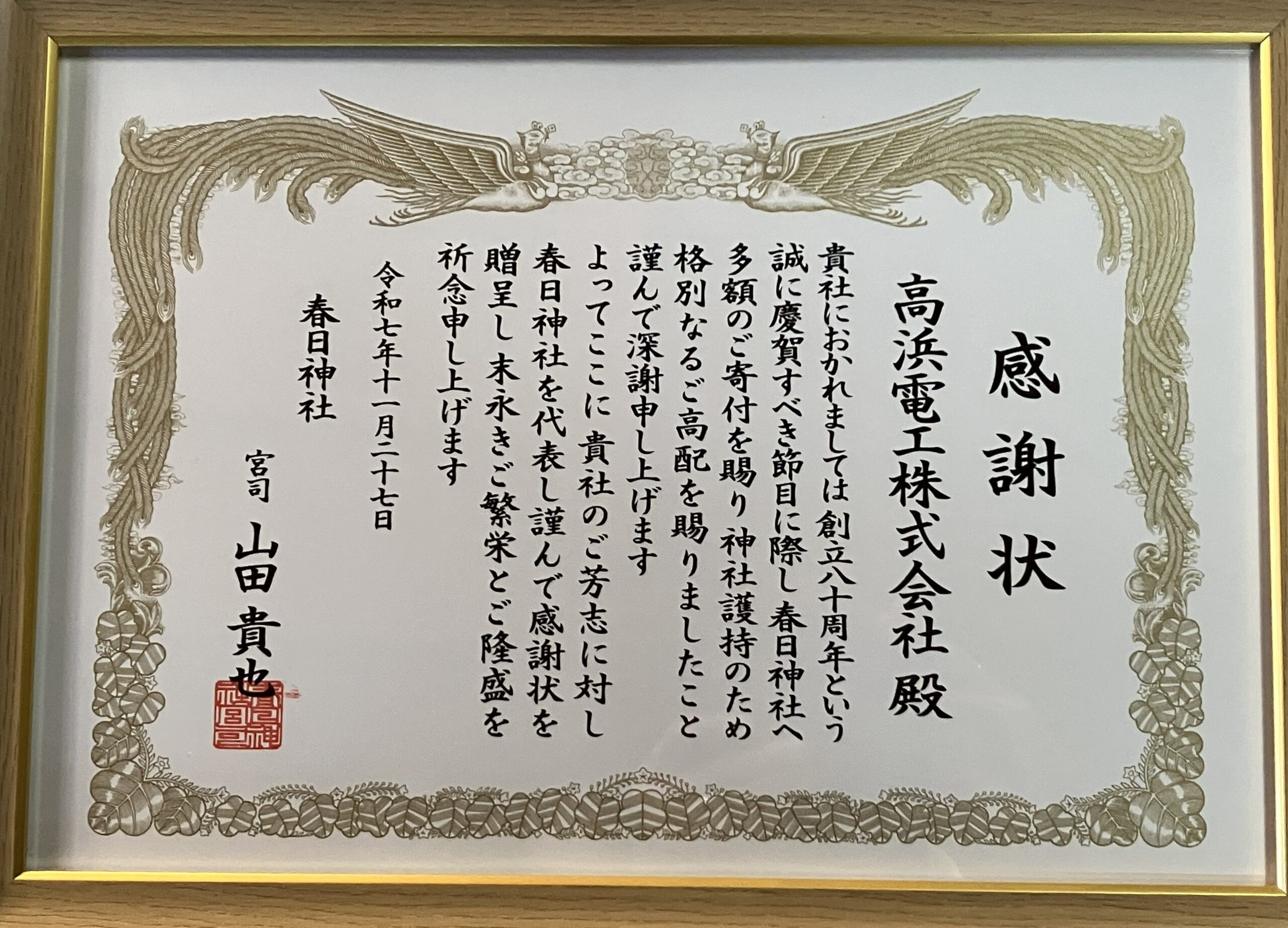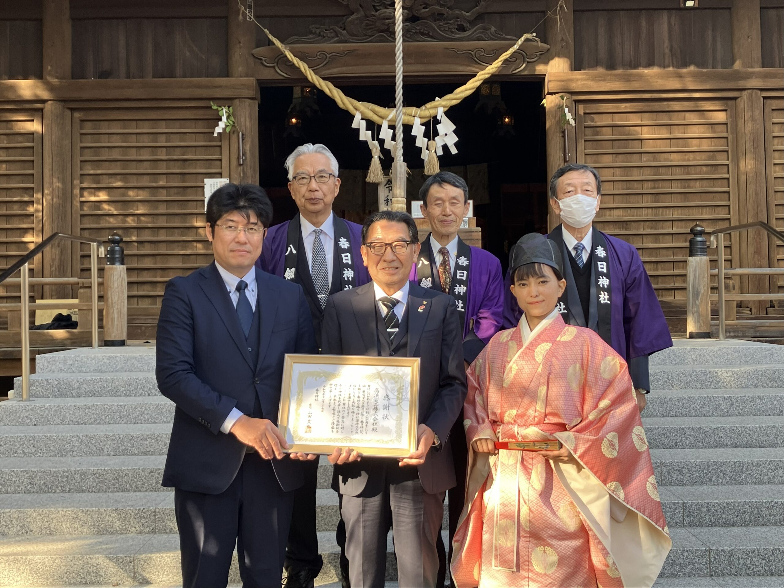 創業80周年の節目に地域の春日神社へご寄付を差し上げました。