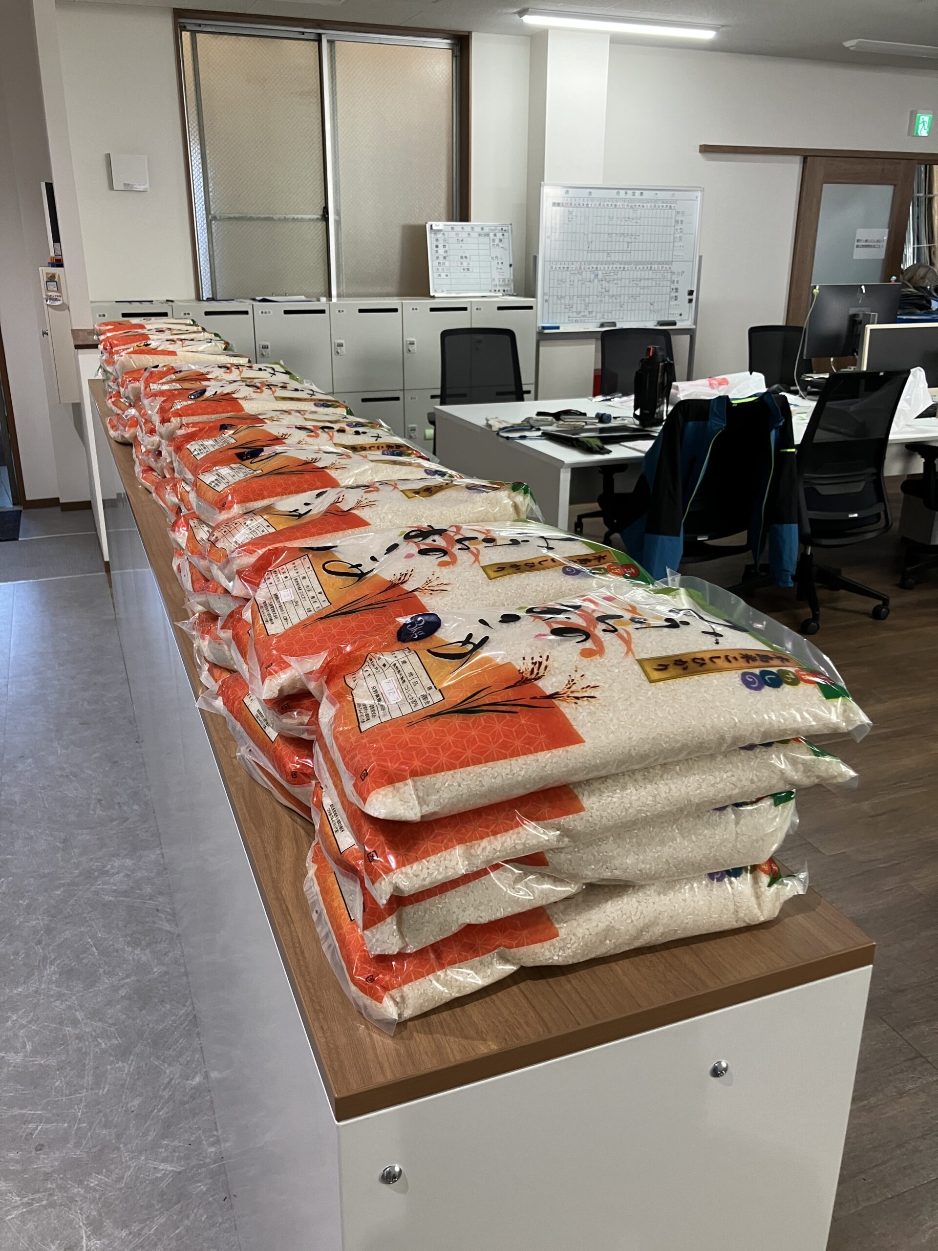 福利厚生で社員全員に「みうらのおこめ」3㎏ 2袋を毎年10月に配布しています。会社の計らいで、今年は2回目の配布をしました。美味しい「みうらのおこめ」を家族の皆さんでもう1度、味わってください!!