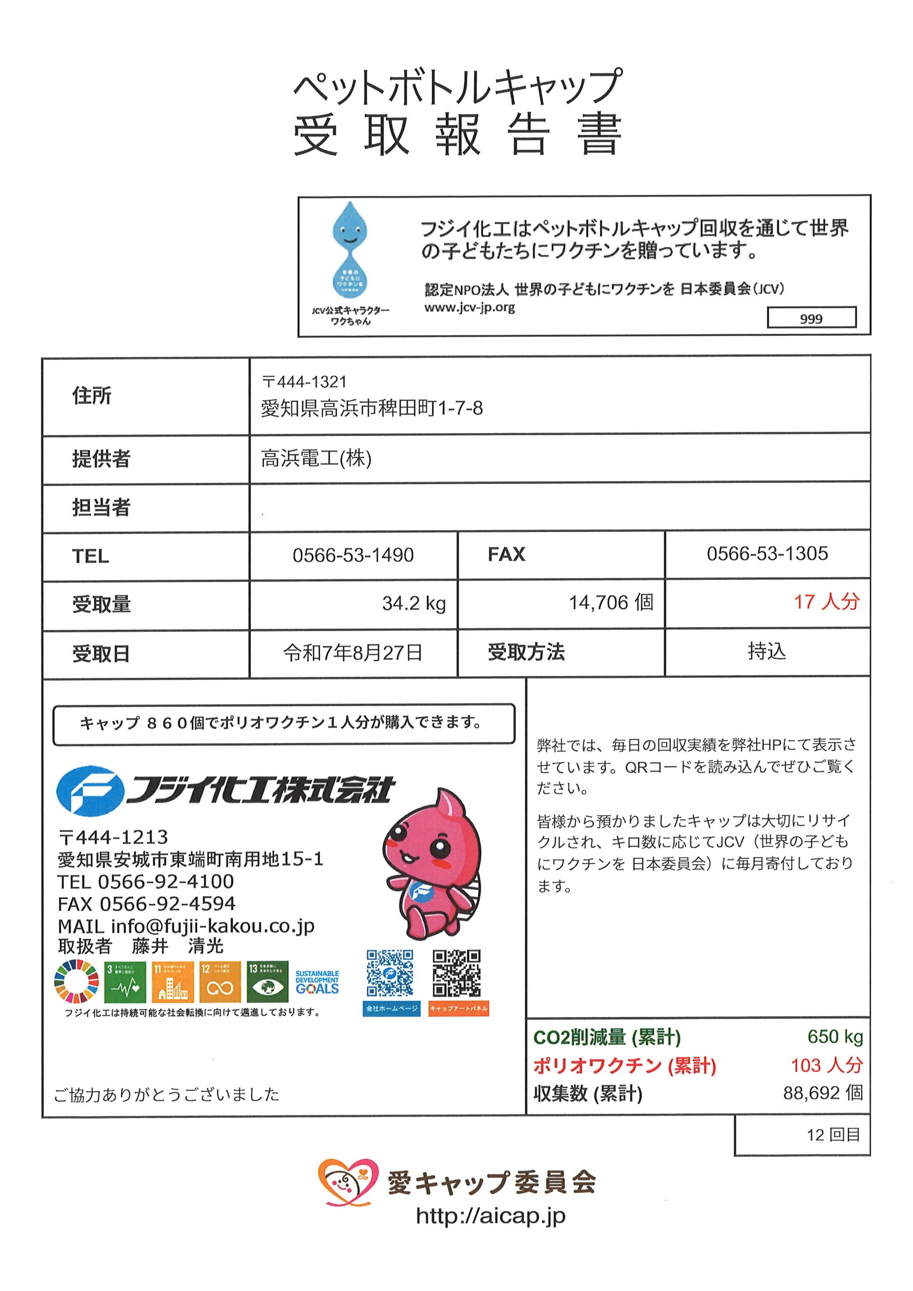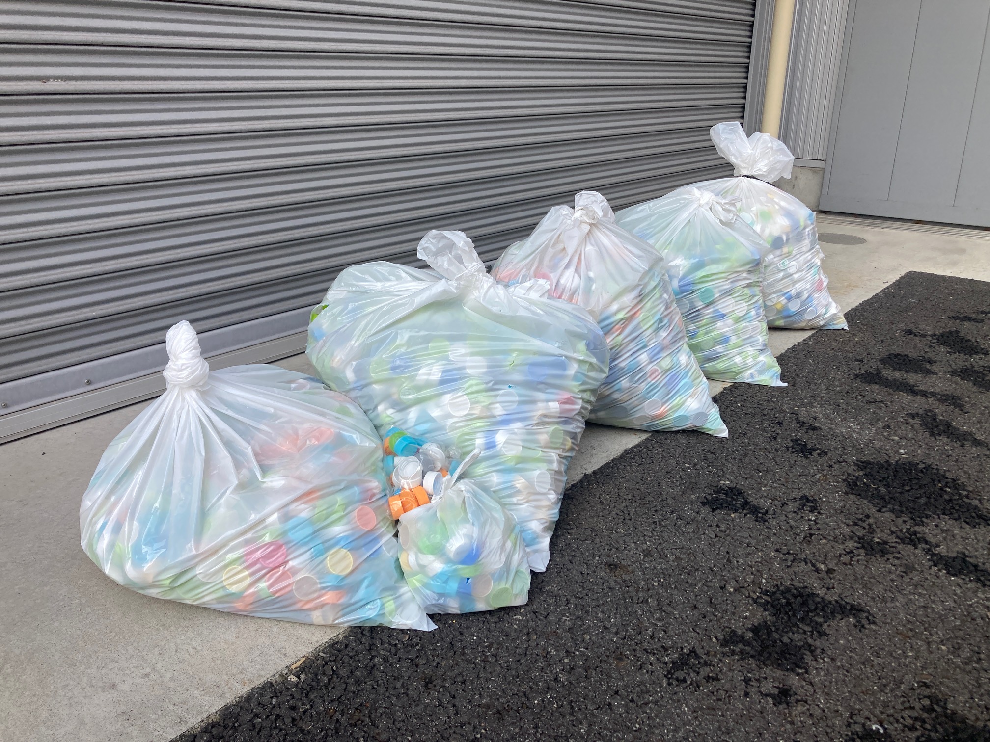 暑い夏の間熱中症対策で支給したドリンクの空を社員と協力会社様が分別してくれました。キャップはリサイクルプラスチック製造会社様へ持ち込みました。