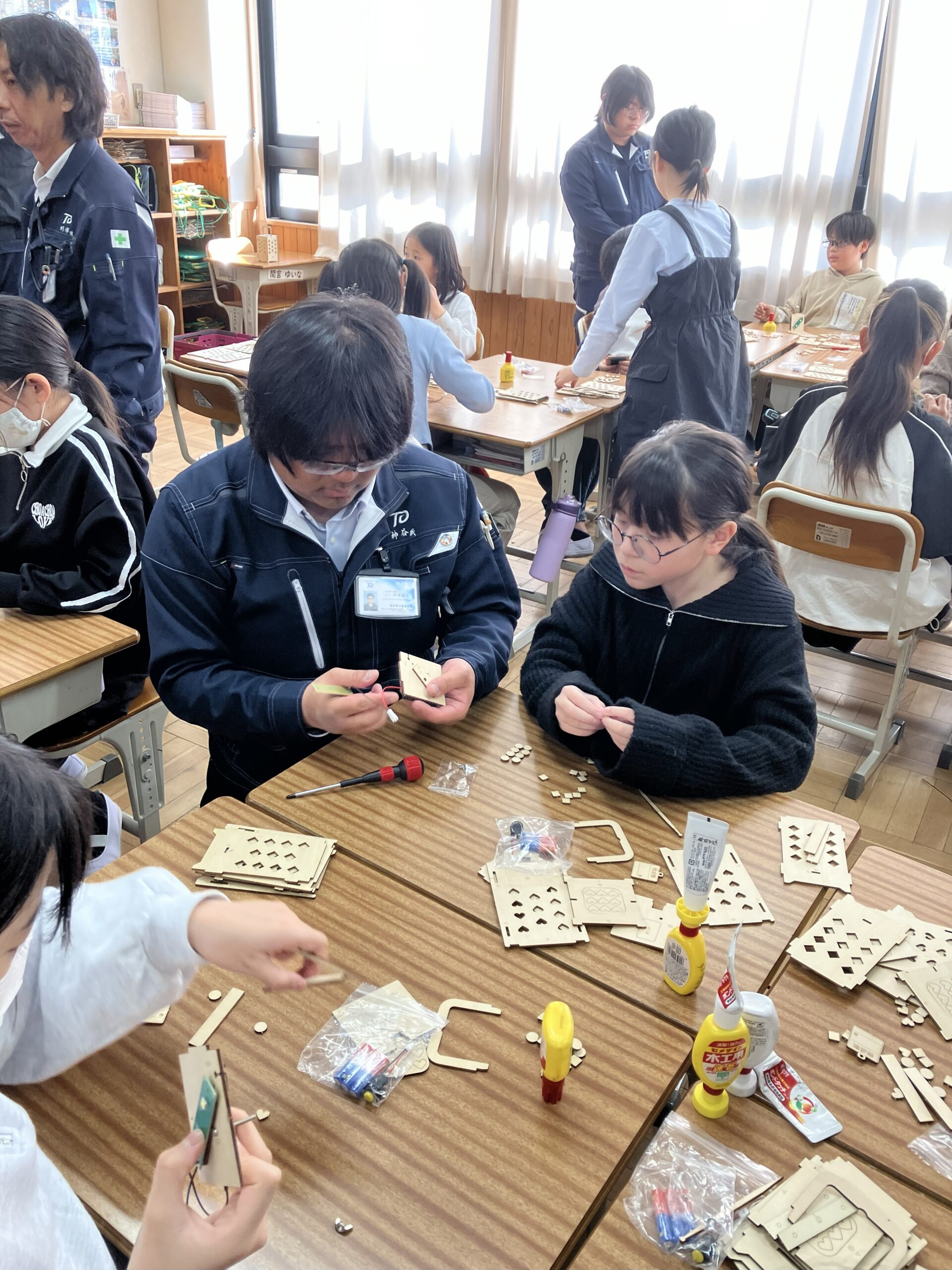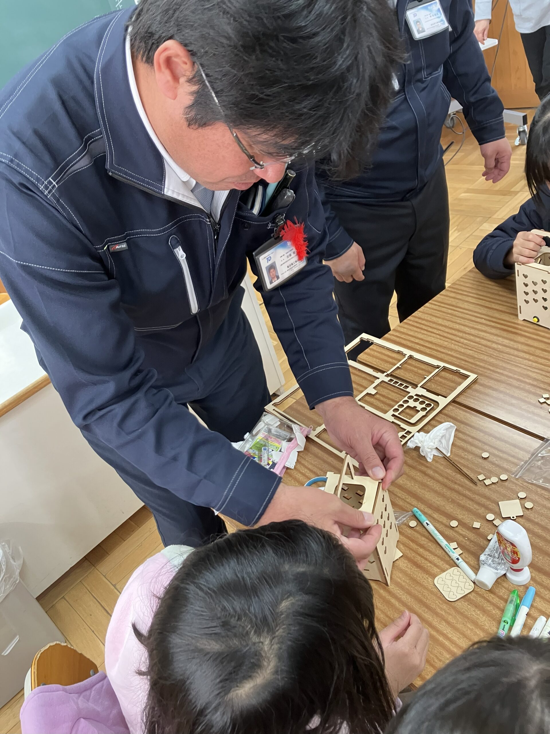 11月の出前授業(工作体験)の時にインフルエンザで学級閉鎖だったクラスと欠席していた児童を対象に追加の出前授業をしました。今回は事務員さんも加わりサポート。真剣な眼差しで取組み、完成してとても嬉しそうな子ども達の笑顔が印象的でした。 これからも環境学習を通じて子ども達の未来を応援していきたいです。