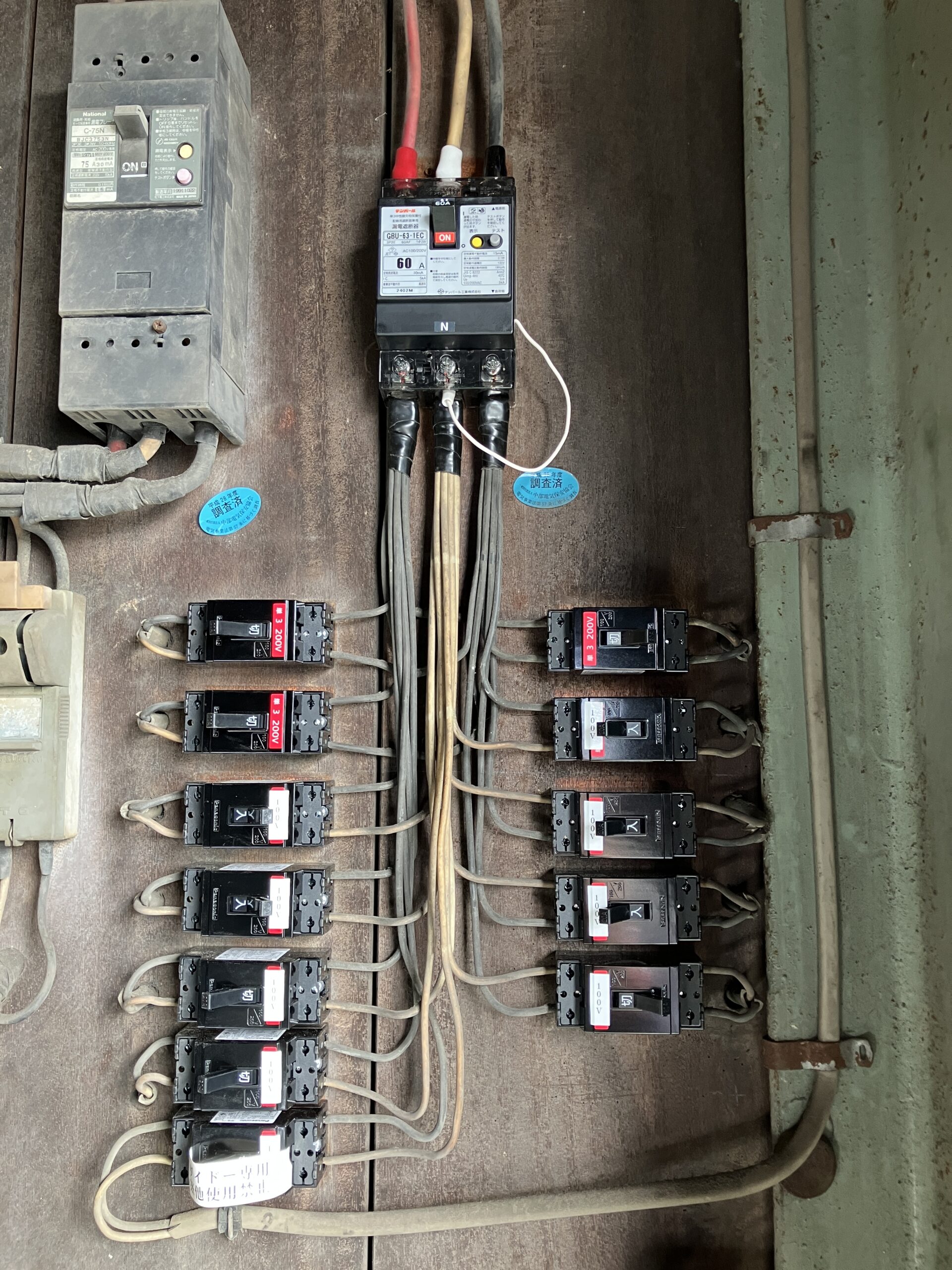 お客様より、分電盤の主幹ブレーカーに搭載されている漏電感知機能が故障しているため、更新のご依頼をいただきました。確認したところ、主幹ブレーカーおよび各回路ブレーカーはいずれも設置から約25年が経過しており、経年劣化が進んでいました。そのため、主幹ブレーカーの更新に合わせて、回路ブレーカーについても安全性確保のため同時に更新を実施しました。